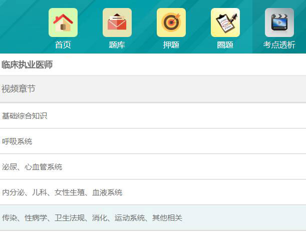 临床执业医师试听课程,执业医师网课免费试听,视频章节目录,随时随地、灵活有效、个人掌握学习主动权、随时学习,不限时间!课程包括基础综合、专业综合与实践综合、生理学、生物化学、病理学、药理学、医学微生物学、医学免疫学、预防医学、卫生法规、医学心理学、医学伦理学、症状与体